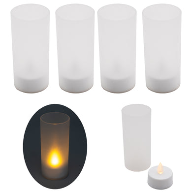 LED Windlicht Teelicht Kerze Batterie Glas Timer Warmweiß Kerzenhalter Flackernd
