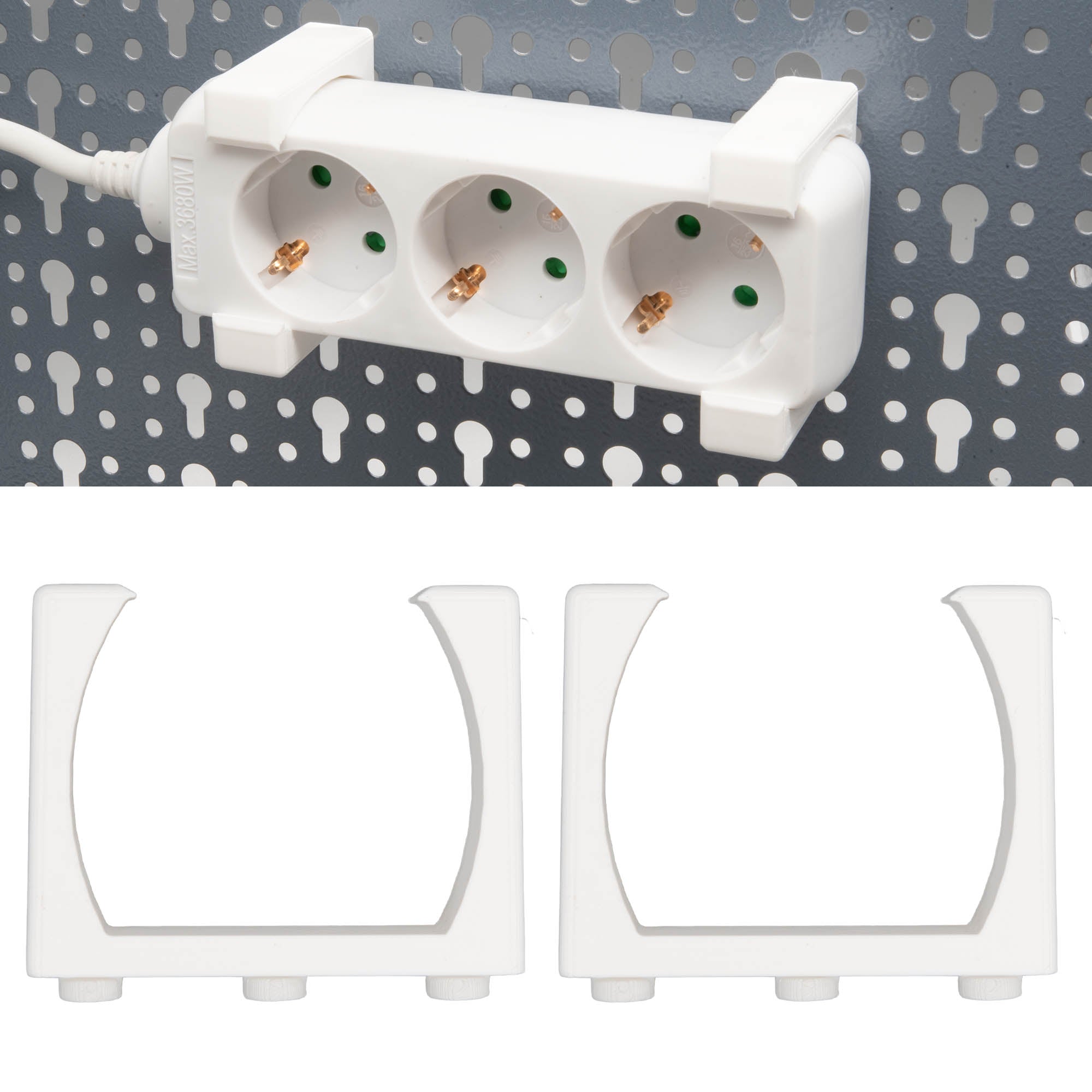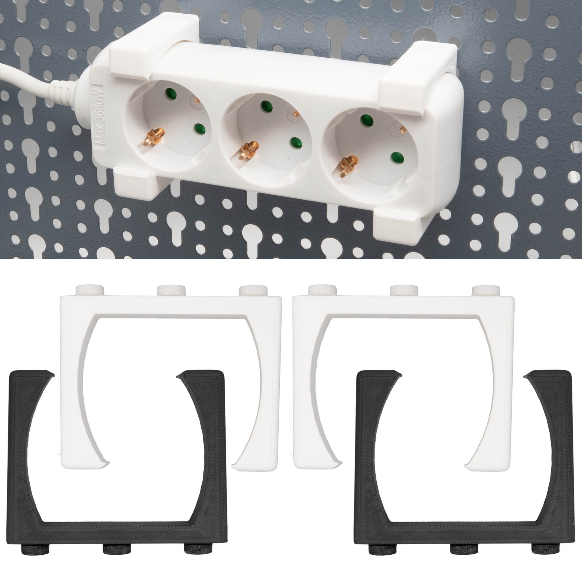 - Zwei Halterungen für eine Steckdosenleiste.